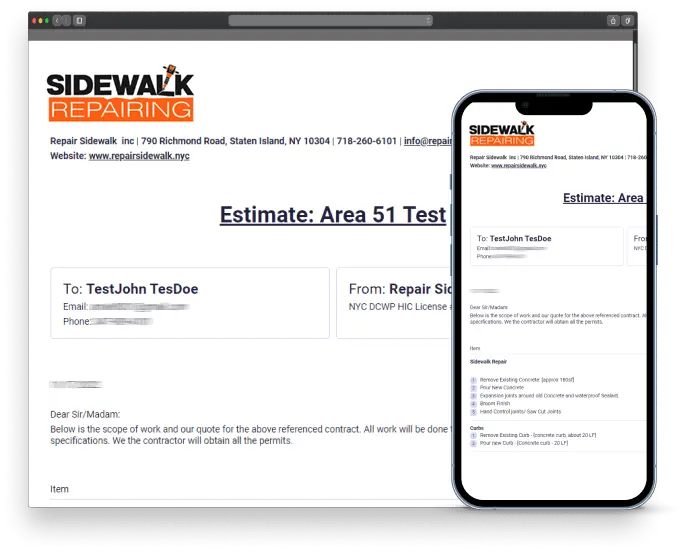 Sign your estimate right from your Phone or Computer. We will receive a copy and start to file the permits for the Sidewalk Repairs.